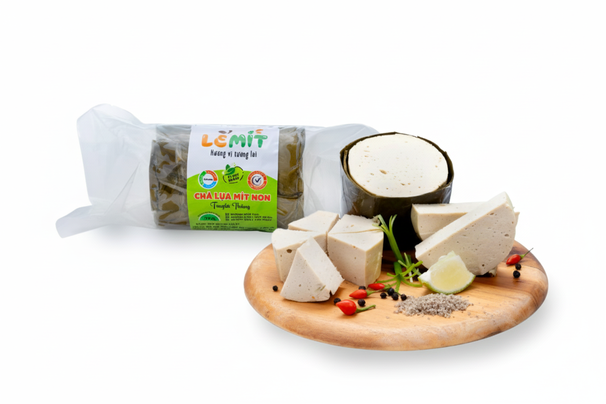 Phương pháp chế biến: Từ những trái mít non tươi, được cắt trực tiếp và vận chuyển về công ty mỗi ngày, được sơ chế kĩ lưỡng, công phu và ứng dụng công nghệ chế biến tiệt trùng hiện đại. Từ thịt của trái mít non tươi ngon qua được ứng dụng các kĩ thuật vật lý và kĩ thuật sinh học nhằm tái tạo cấu trúc của “Thịt mít” giống như “ giò sống” của thịt động vật để làm giò chả… Từ nguyên liệu “Thịt mít” này, chúng tôi đưa vào qui trình sản xuất hiện đại, được kiểm soát chặt chẽ, nghiêm ngặt và cấp đông đạt chuẩn ở nhiệt độ – 25 độ C nhằm ức chế sự phát triển của vi khuẩn, nhằm tăng thời gian bảo quản và tối ưu hương vị tự nhiên của sản phẩm.
